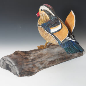 $2,200.00Mandarin Duck hand carved and painted by Vern Hesketh. The Mandarin Duck is carved out of Tupelo with Holly feet and mounted on a rustic log base. Available for in store pick up only.