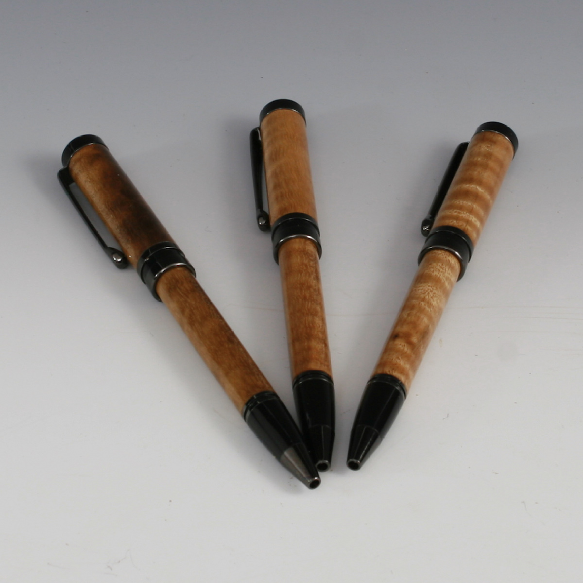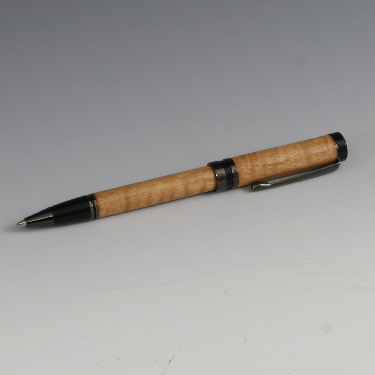 Classic Parker style twist pen. Made in Oregon out of beautiful Myrtlewood with gunmetal and black or polished chrome and black mechanism.Will take standard parker style refill.