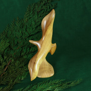 A playful dolphin crafted by Ernie Besler out of Oregon Myrtlewood.