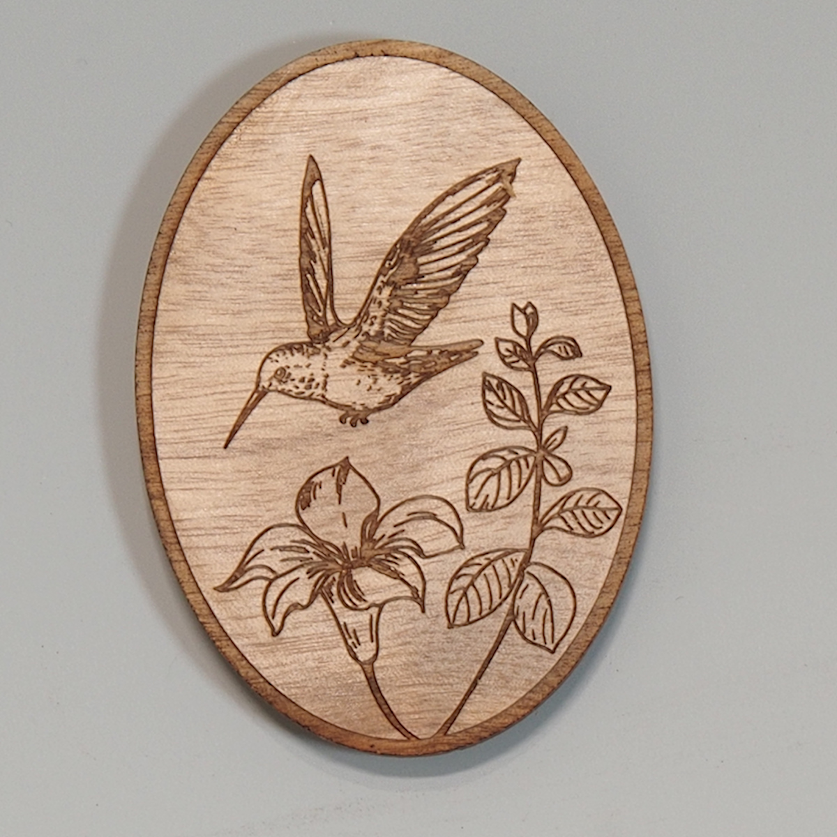 Then we move on to the computer and engraver where we design, tweak, engrave, redesign, engrave again, and repeat until we end up with a pleasing combination that merges the detailed design with the natural beauty of myrtlewood.