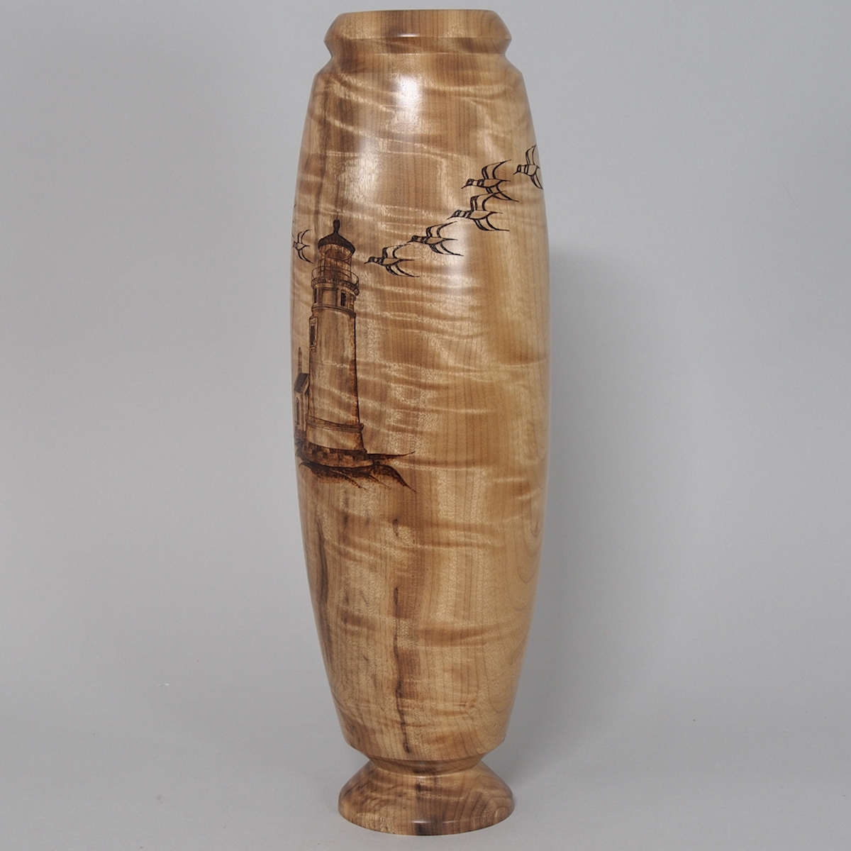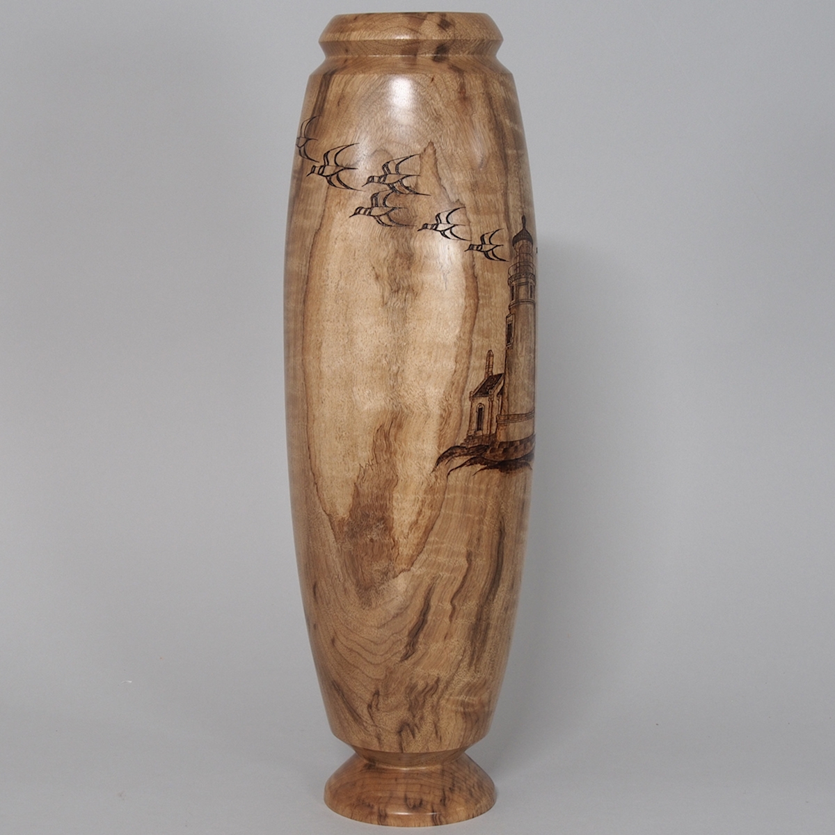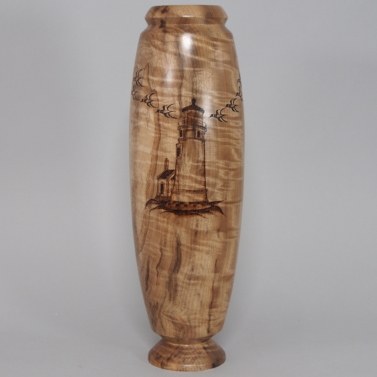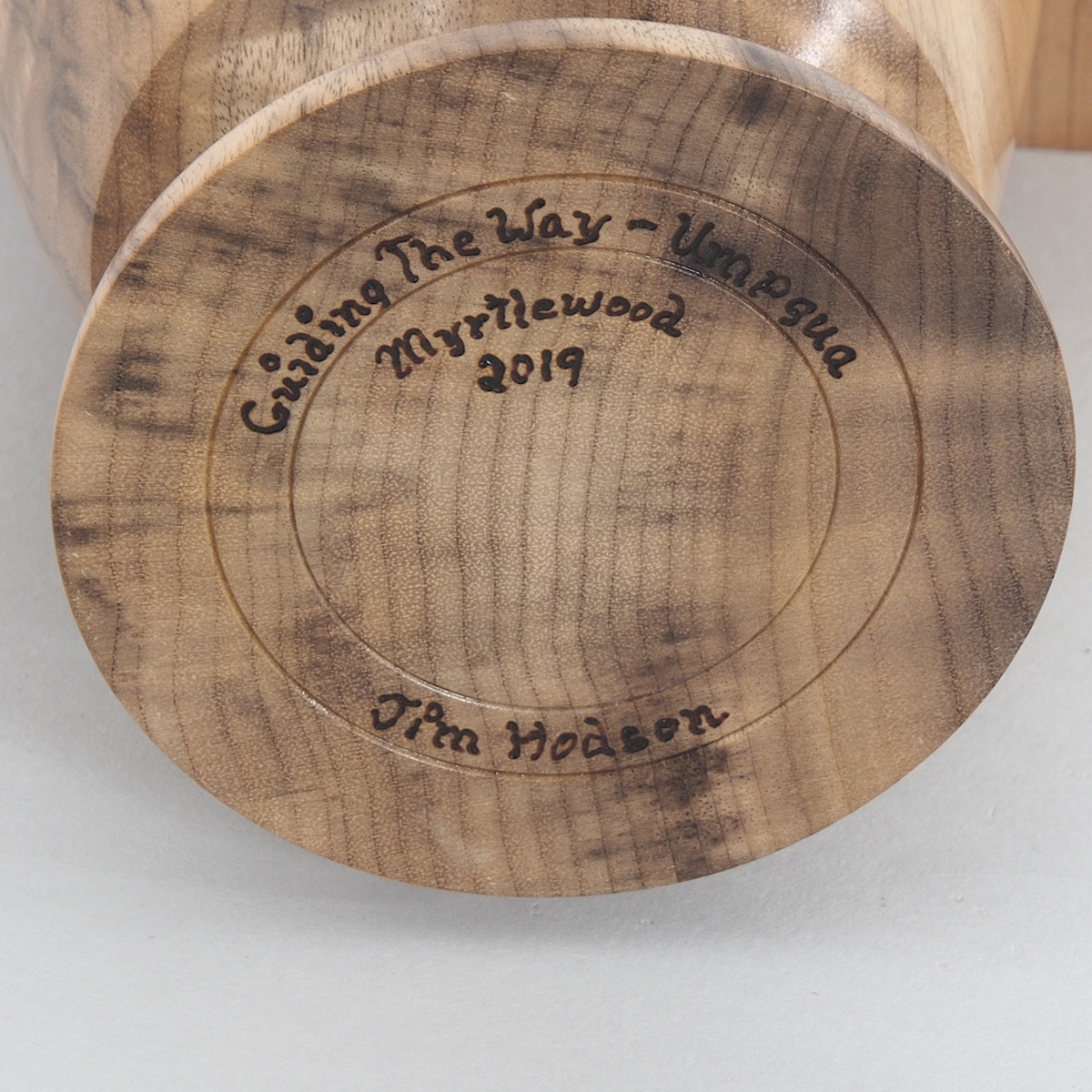 Curly Myrtle Vessel _ Umpqua Lighthouse woodburning by Jim Hodson