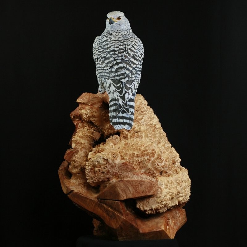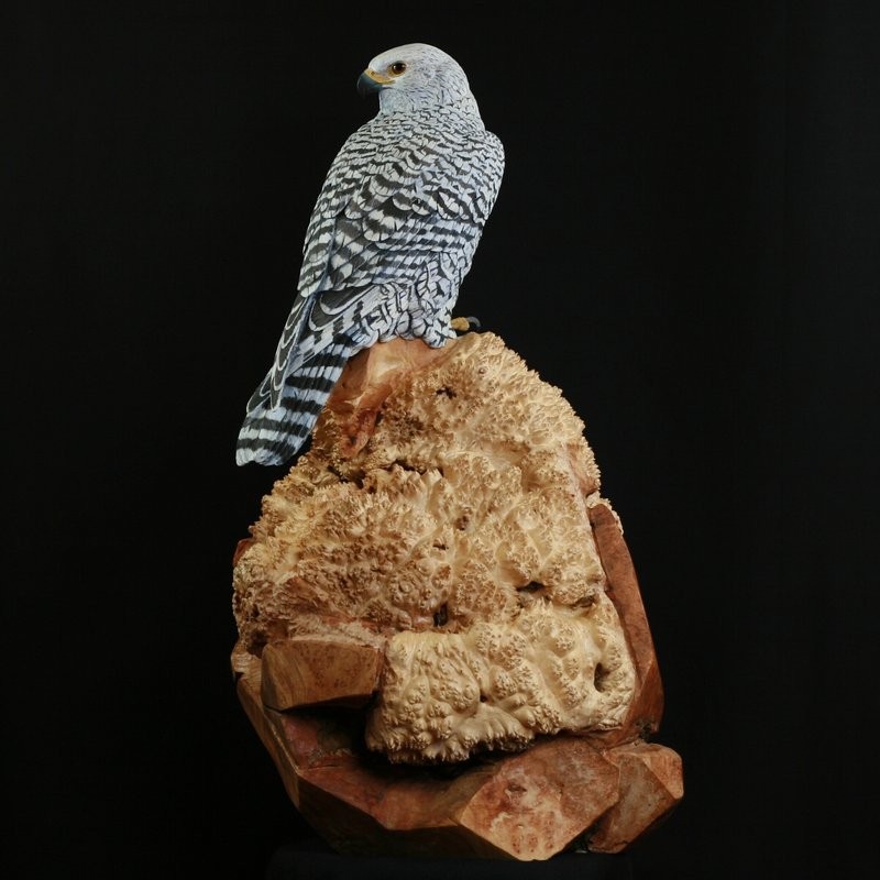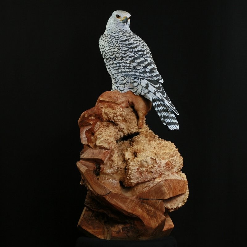 Lifesize Gyr Falcon hand carved out of Tupelo wood