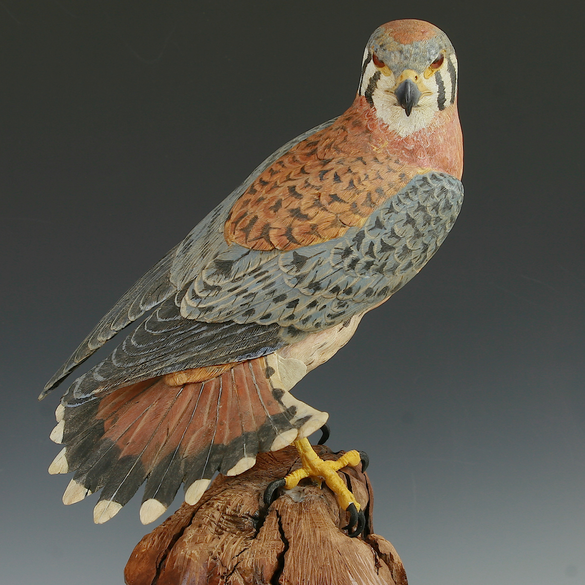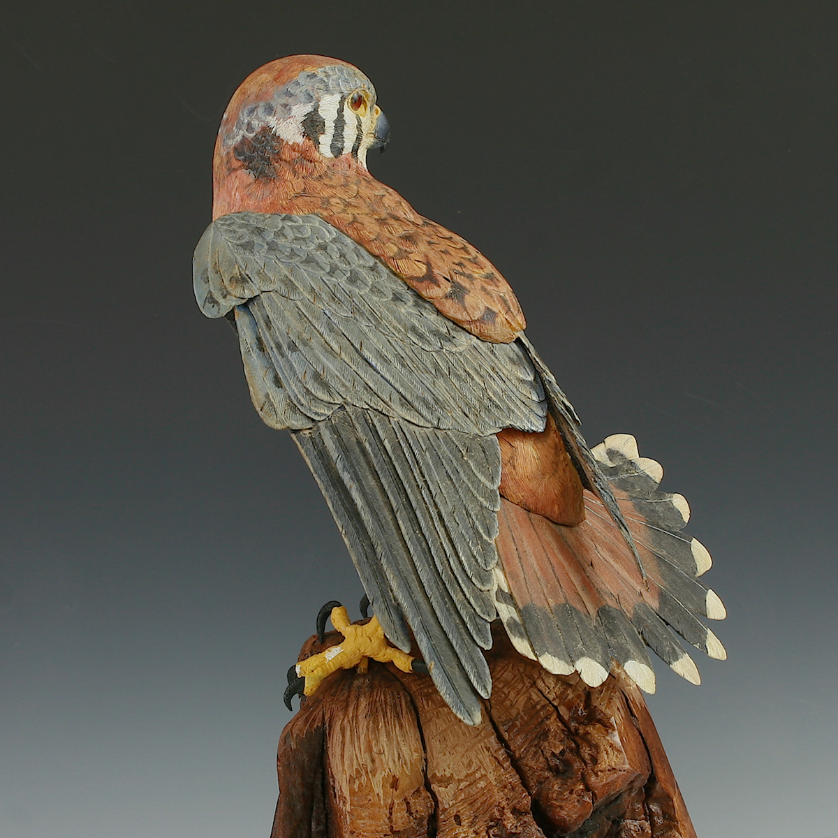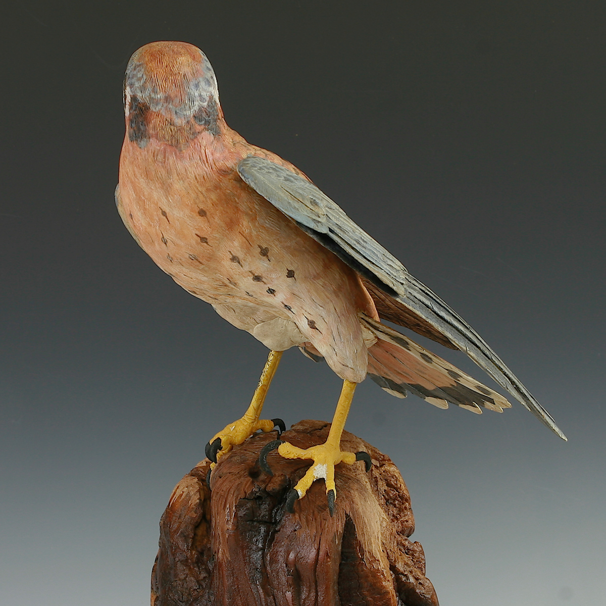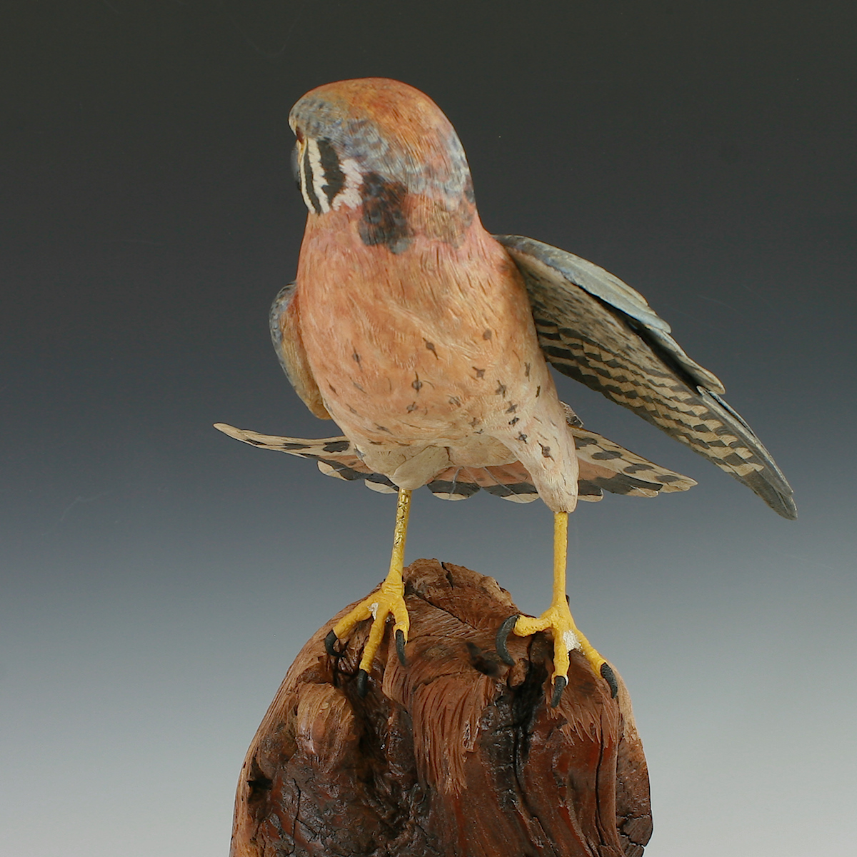 Hand Carved Kestrel Stretching with Flaired tail