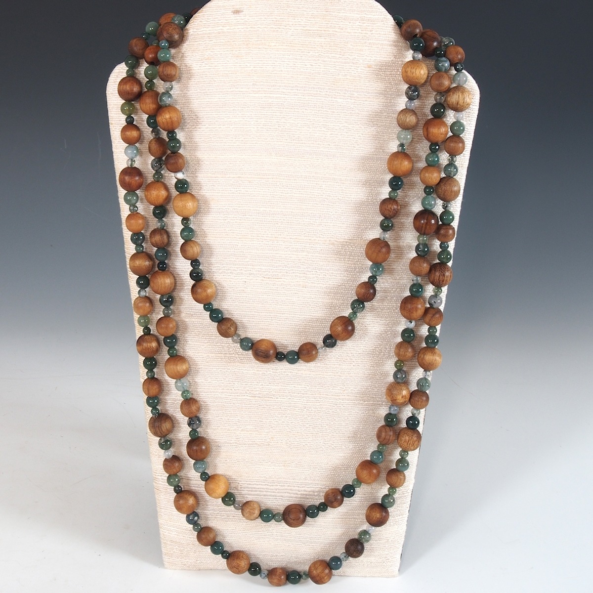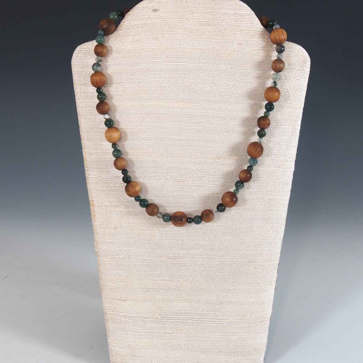 Myrtle and Moss Agate Bead Necklace 18inch