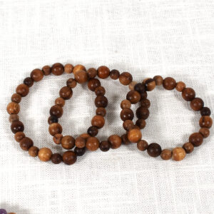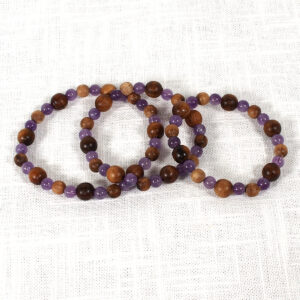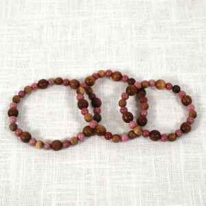Moss Agate and Myrtlewood beads on a stretchy power cord. No clasp necessary 18″