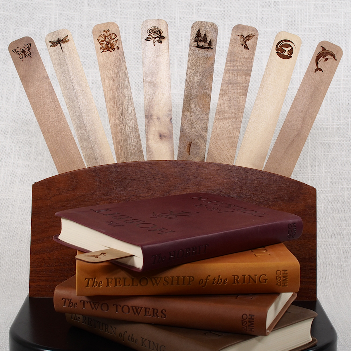 These wonderful wood bookmarks feature a small engraving of a dolphin positioned to peek out of the top of your book.