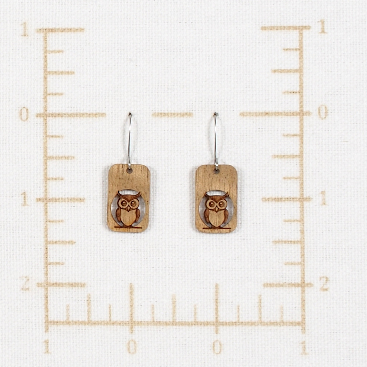 Myrtlewood Dangle Earrings Rectangle Owl