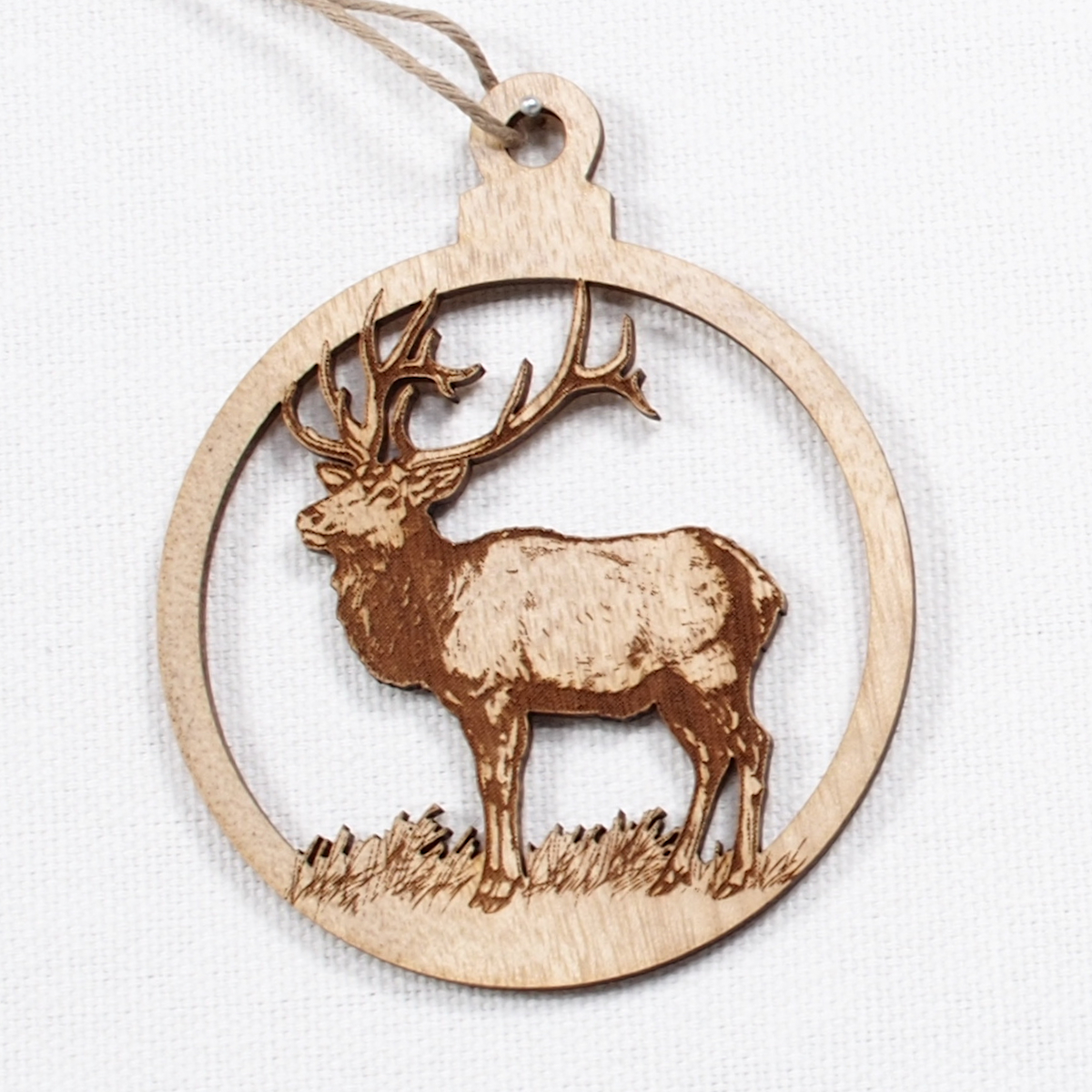 These wonderful Wood Ornaments crafted out of Oregon Myrtlewood feature an engraving of an Elk.