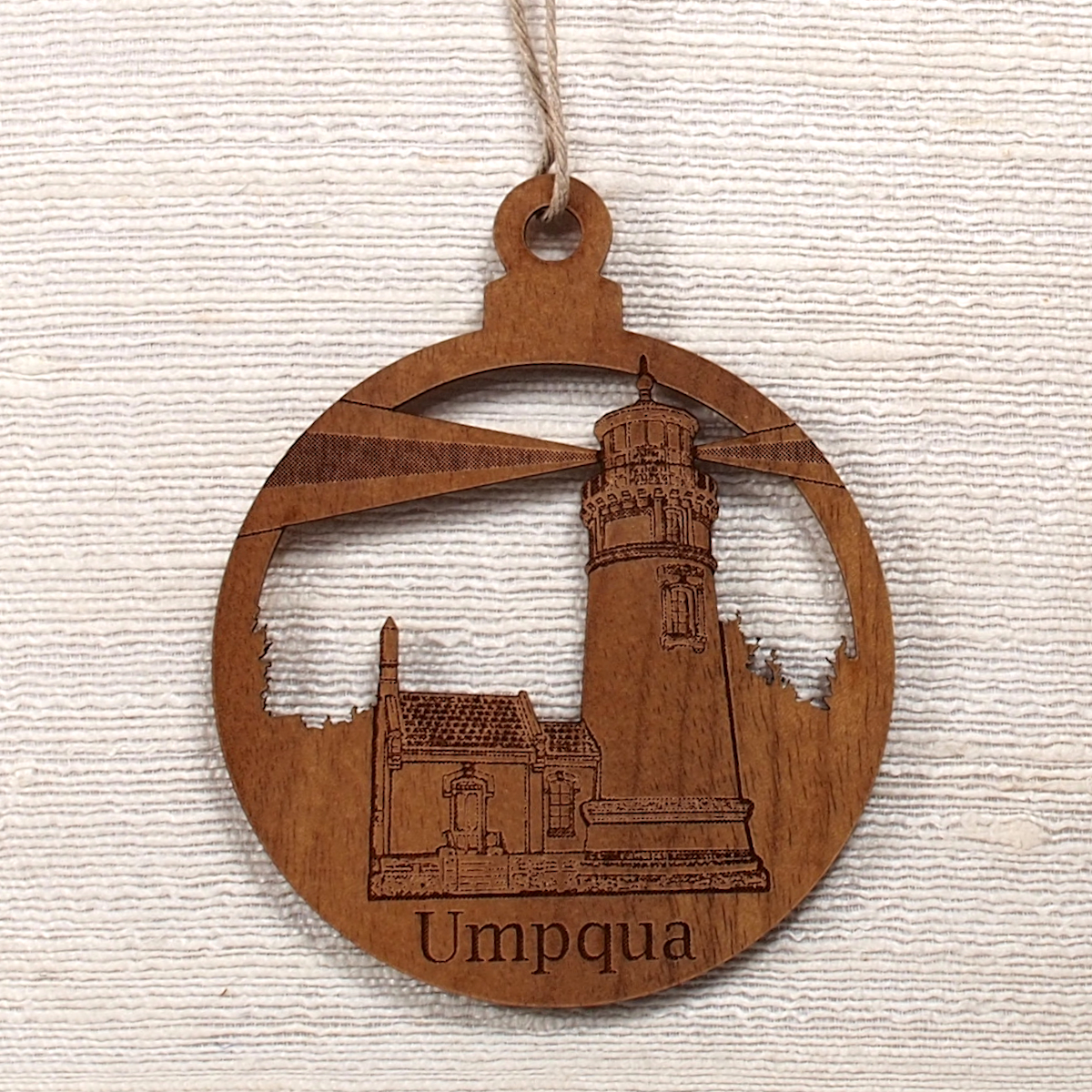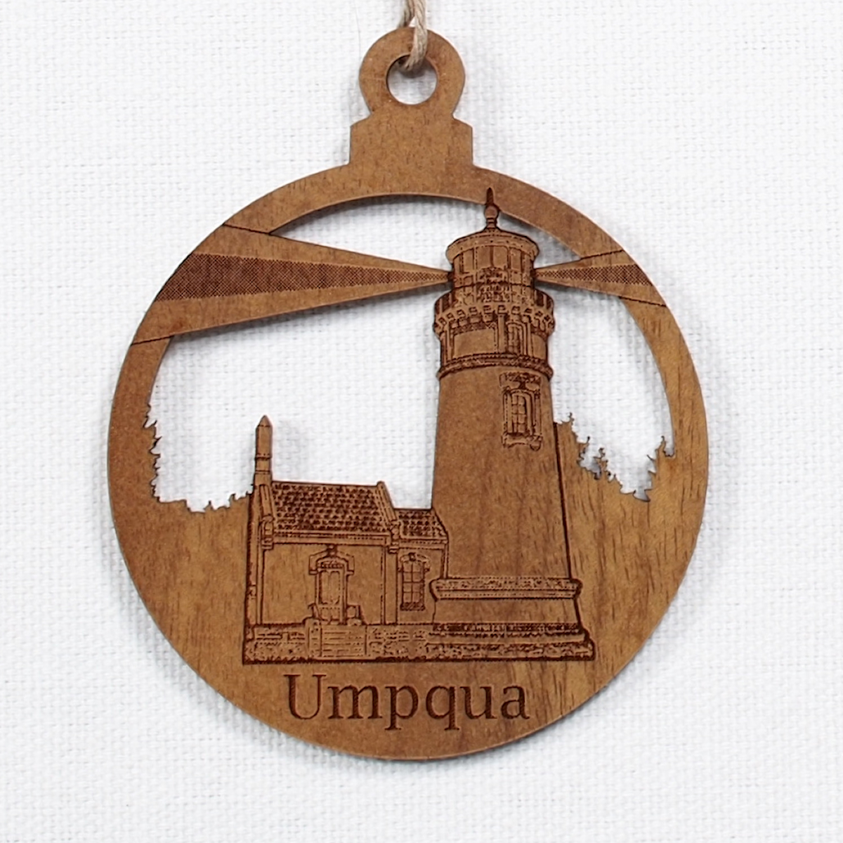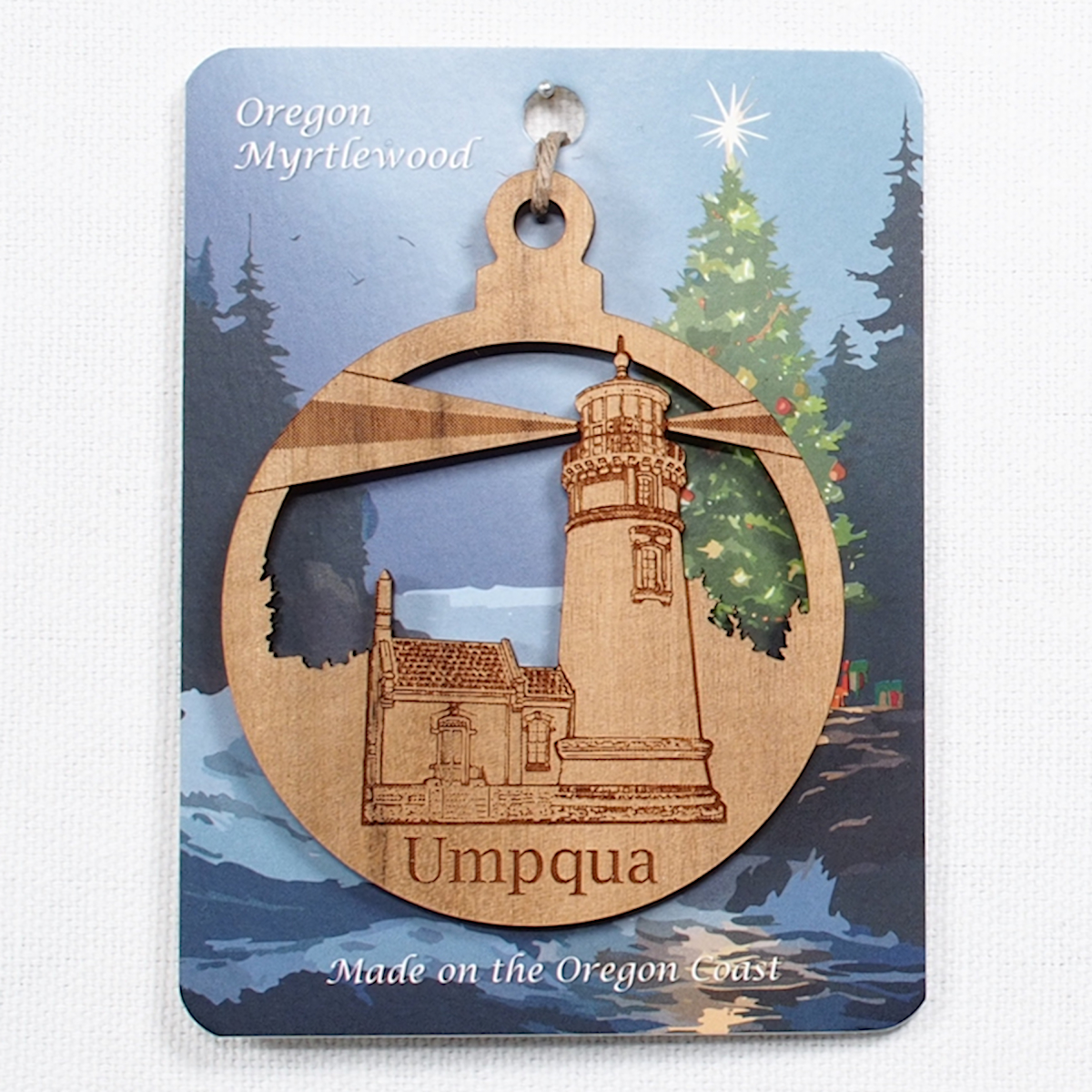These wonderful Wood Ornaments crafted out of Oregon Myrtlewood feature an engraving of our local Umpqua River Lighthouse.