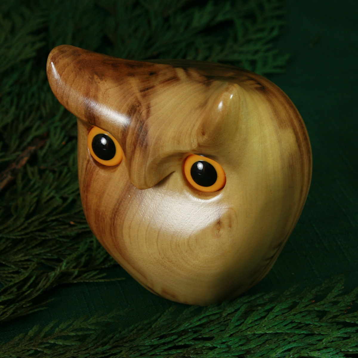 A wise old owl; handcrafted by Ernie Besler out of Oregon Myrtlewood.