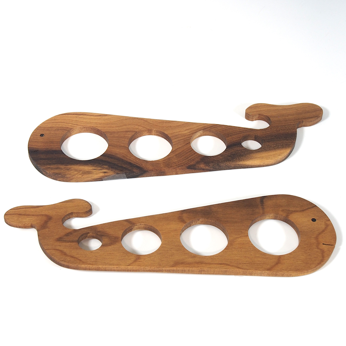 A double duty kitchen utensil. Use it to measure out how much spaghetti noodles to cook up, then use the whales tail to pull out or push in the oven rack heating up your french bread. Wood grain figure and color will vary.