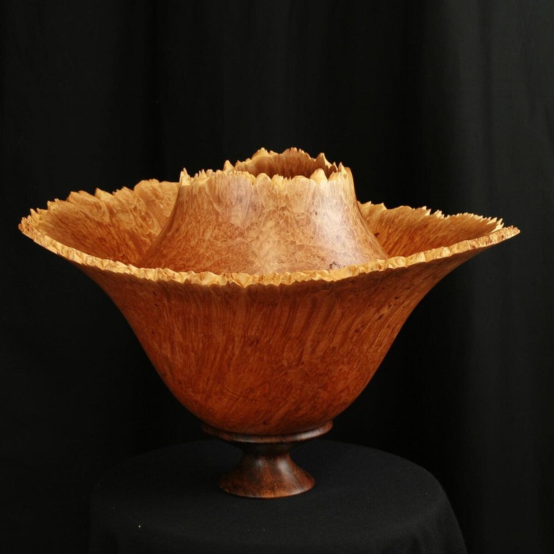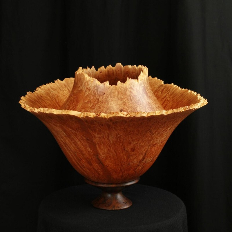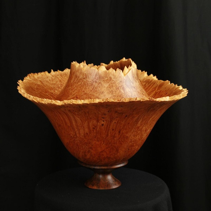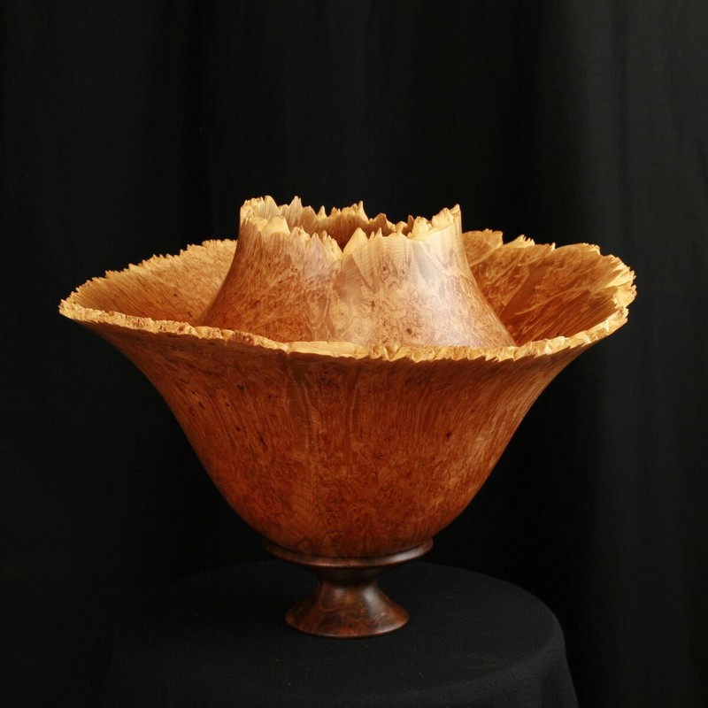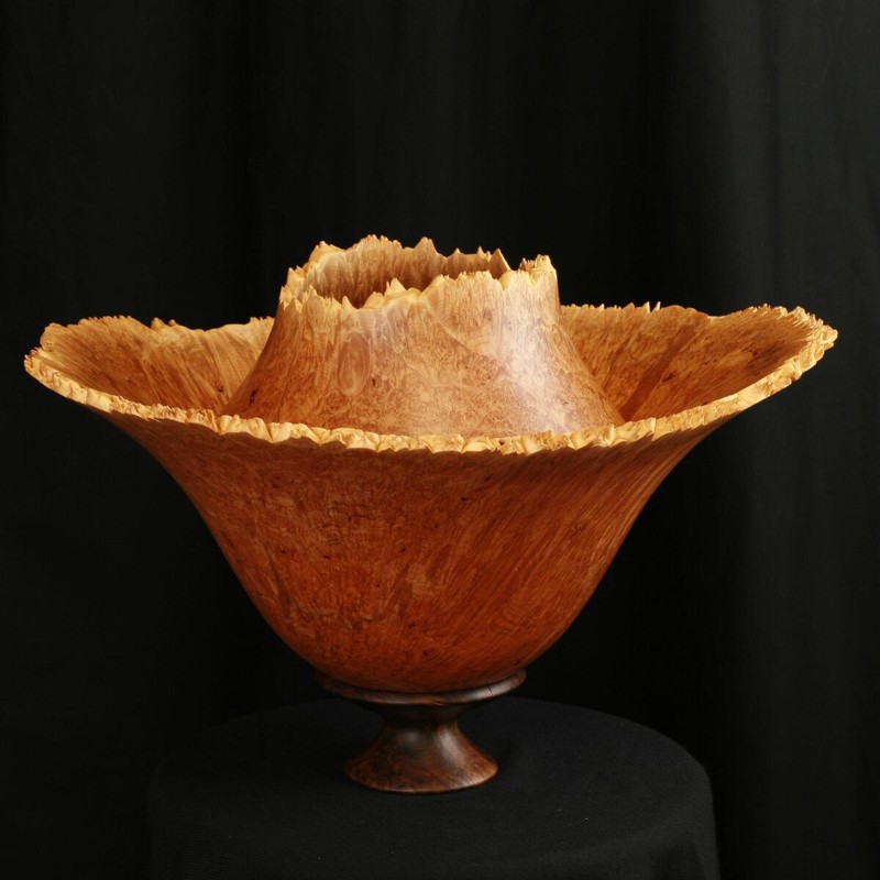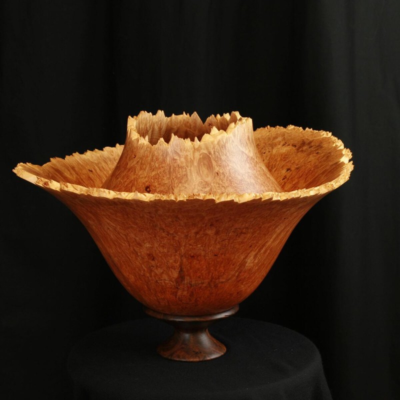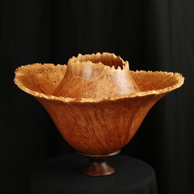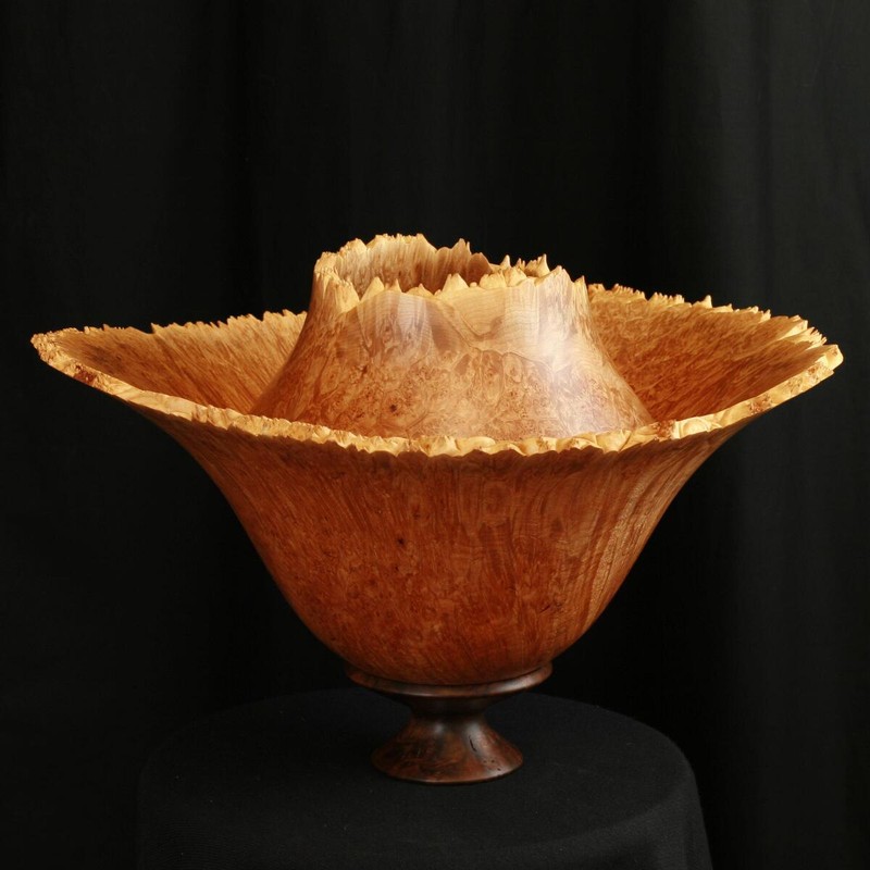 This is turned from an exceptional Maple Burl with a Black Walnut Base.