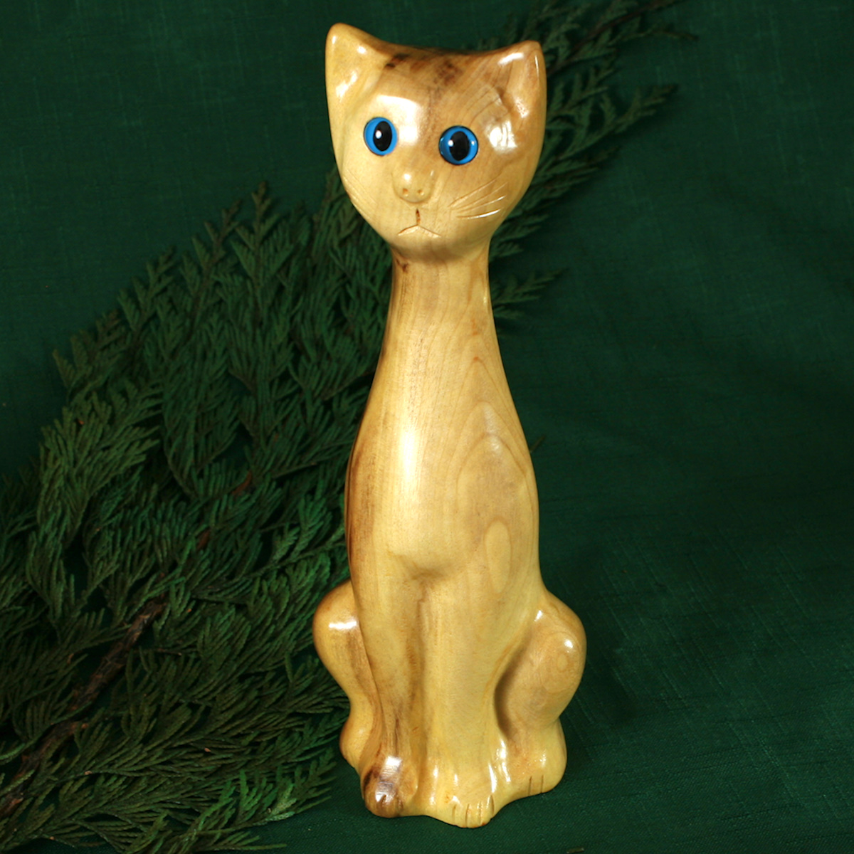 A cute Siamese cat; handcrafted by Ernie Besler out of Oregon Myrtlewood.