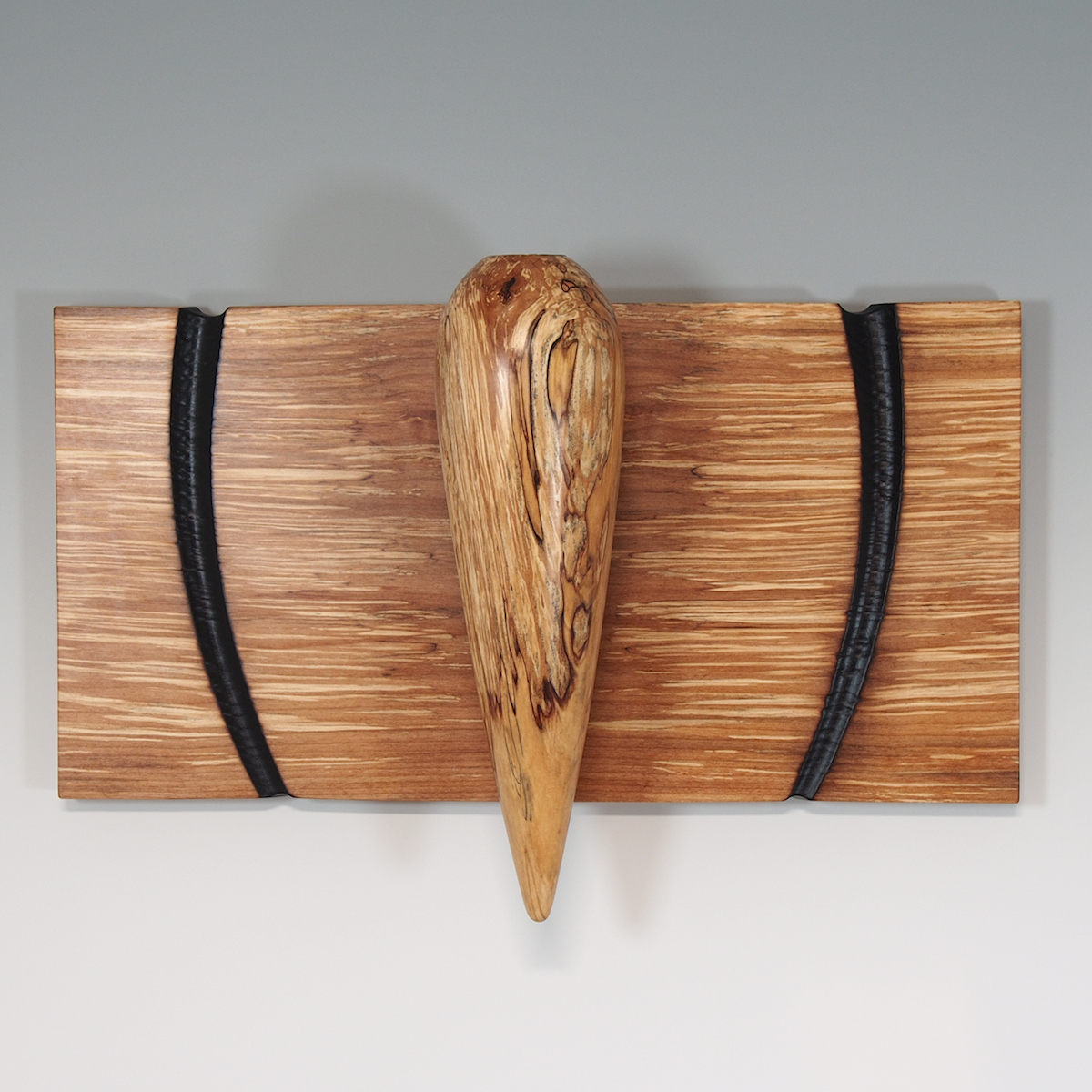 Wood turned Spalted Alder Wall Sconce mounted on a bookmatched multi axis turned base