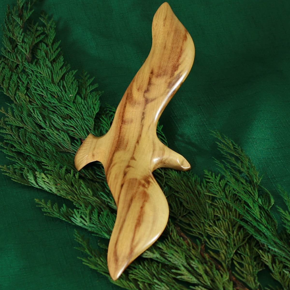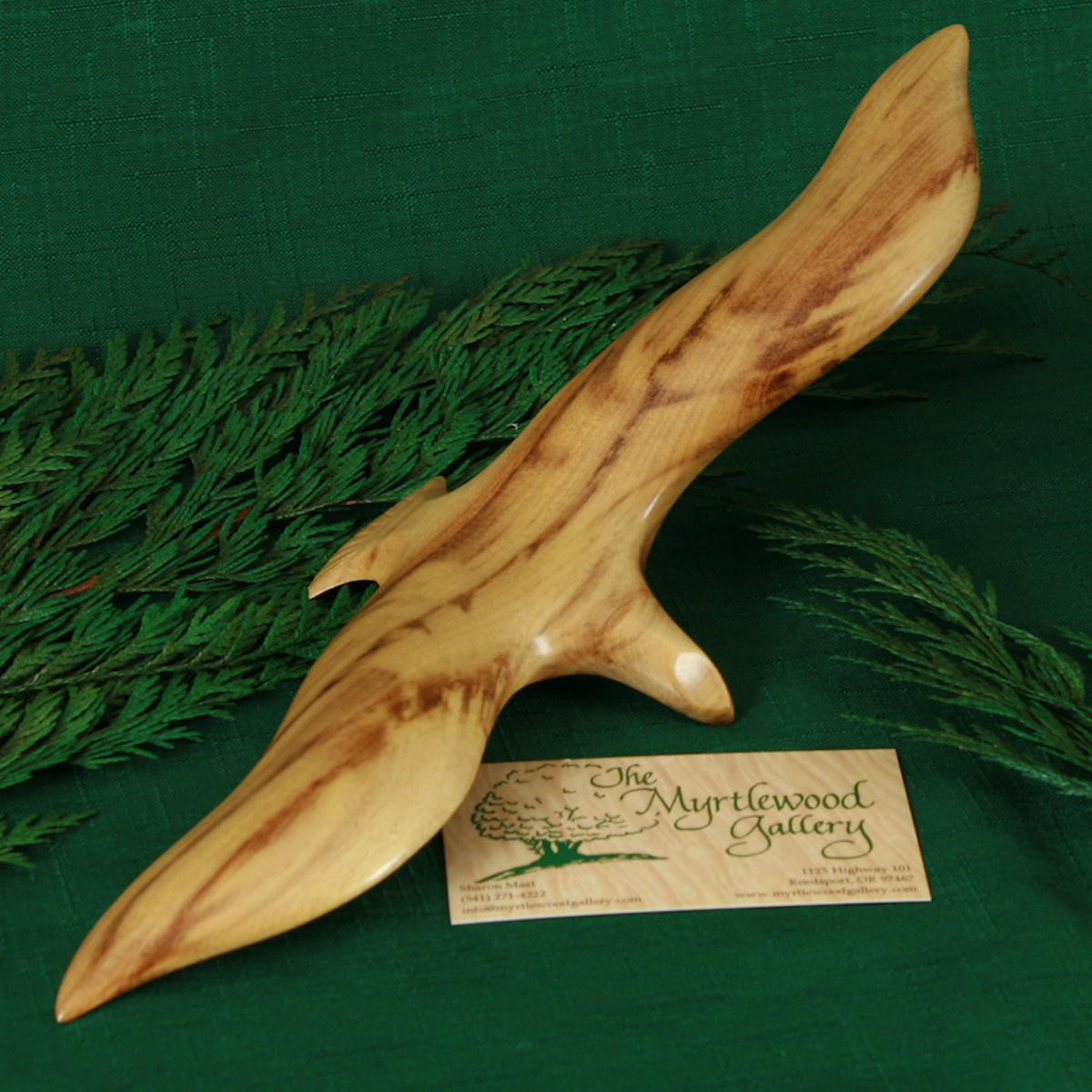 Myrtlewood wall seagull 11.5-12 inches by 4 inches; handcrafted by Ernie Besler out of Oregon Myrtlewood.
